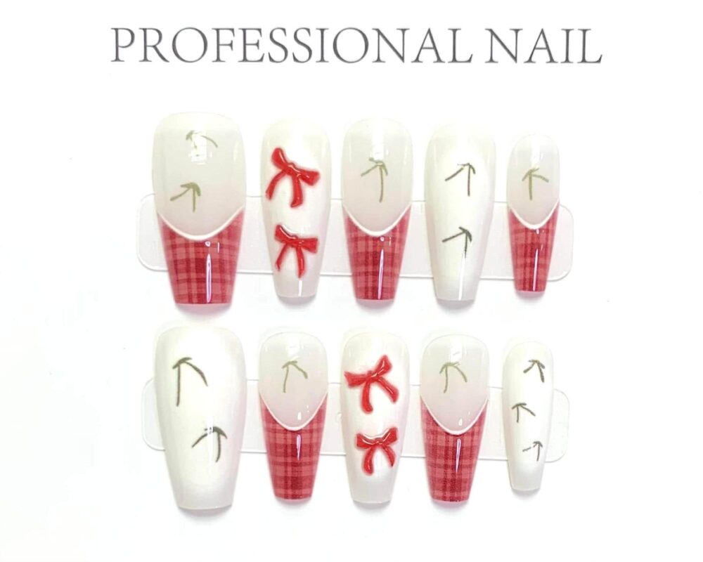 Medium Stiletto Fresh Grid Pattern Nail Tips